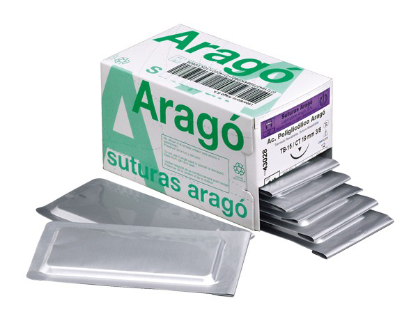 SUTURA ABSORBIBLE PGA 2/0, AGUJA TRIANGULAR TC24 37mm, 70cm 12U ARAGÓ