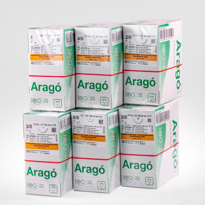 SUTURA ABSORBIBLE POLIGLECAPRONA 2, AGUJA TRIANGULAR TC26 40mm, 90cm C/36 ARAGÓ