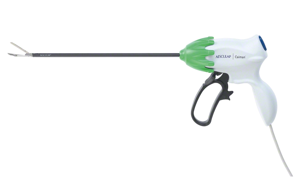 Instrumento bipolar avanzado CAIMAN, curvo, no articulado, longitud de trabajo: 360 mm, Ø del vástago: 5 mm, longitud de la mandíbula: 21,50 mm, Maryland, de acción simple, punta: fina, estéril, desechable.